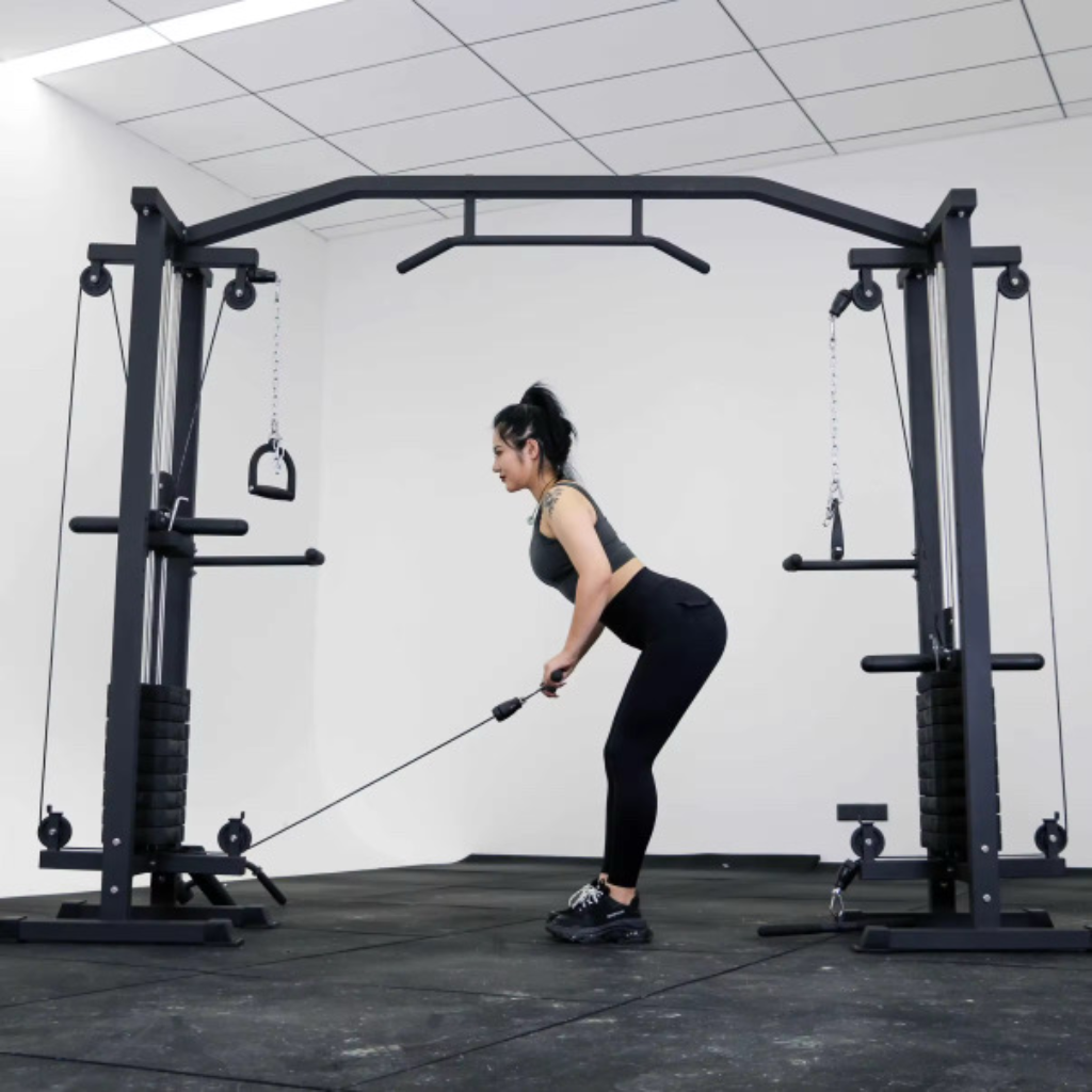 • Sistema de doble polea regulable en altura, que ofrece múltiples ángulos de trabajo para adaptarse a diferentes ejercicios y niveles de usuario.