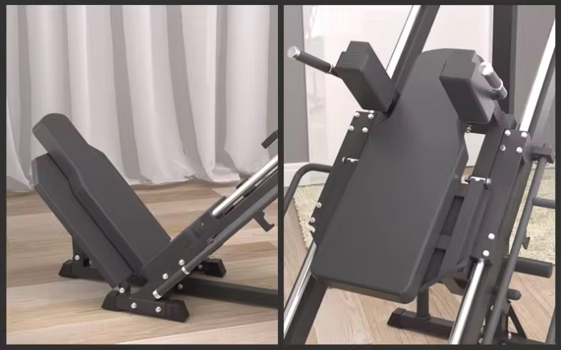 Sistema dual: prensa inclinada + hack squat.