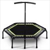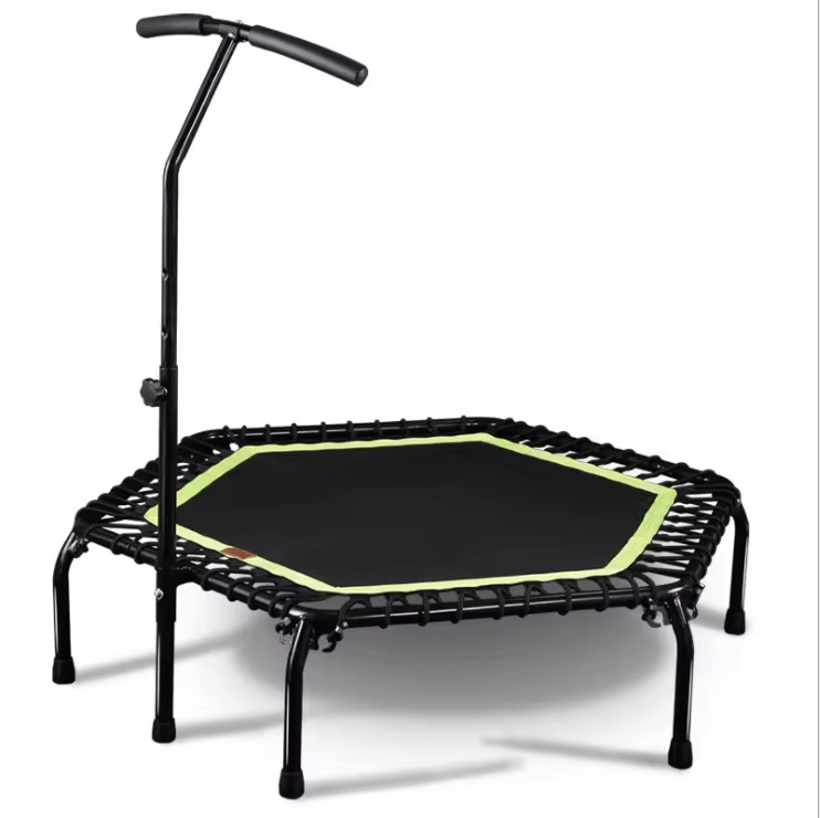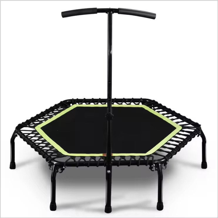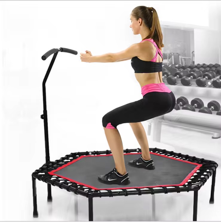 Fabricado con estructura de acero reforzado y cuerdas elásticas de alta resistencia que reemplazan los resortes tradicionales, ofrece una amortiguación suave y silenciosa, protegiendo tus articulaciones. Perfecto para entrenamientos en casa, gimnasios o clases grupales de jumping.
